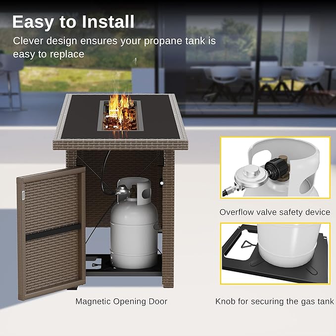- š ššš š§šš š£šš„š§š¬ š š¢š„š šš¢š„ššš¢šØš¦: Our Gas Fire Pit Table top has a large area of tempered glass which can be converted into a wine table or conversation table with your family and friends, for wine tasting and chatting on a warm night. The rattan color complements the table and glass stone, making your fire table beautiful and elegant.
