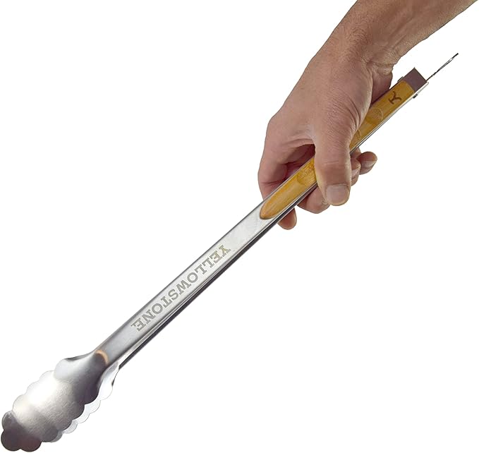 - 2 pc BBQ GRILL SET - These Yellowstone Grill Accessories use farm-raised bamboo handles and stainless steel construction with Yellowstone logos.