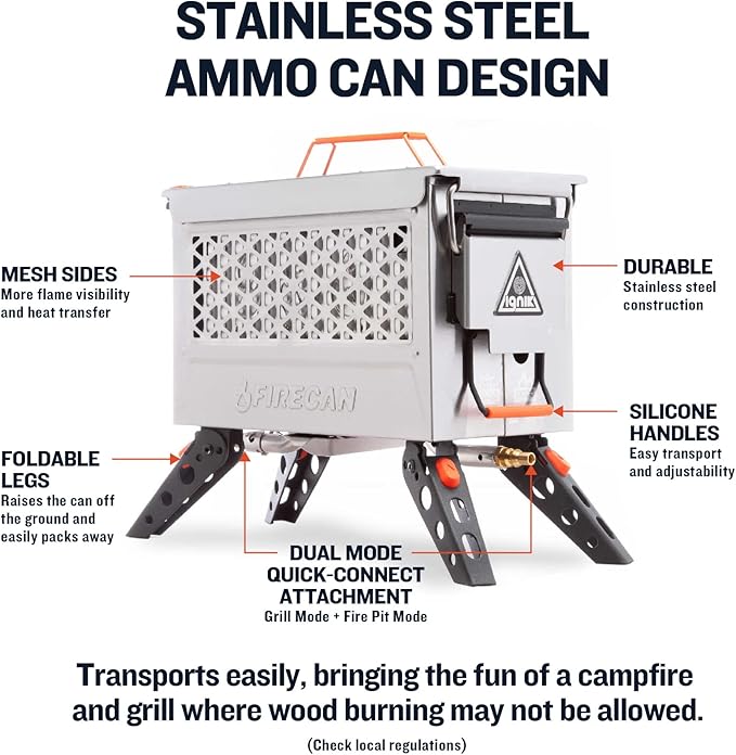 - Stainless steel construction for Stainless steel ammo can design transports easily, bringing the fun of a campfire and grill where wood burning may not be allowed (check local regulations) durability