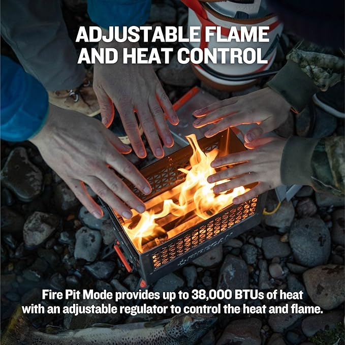 - Packable propane-fueled outdoor fire pit kit with a removable grill insert provides a safe and portable campfire and outdoor cooking option at campsites, tailgates, beaches or backyard patios