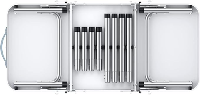 - Portable & Easy to Install and Fold up: This 3ft folding table comes with carry handles and a storage bag, making it very portable. Set up within 1 minute and folds up into a briefcase sized package for easy transport and space-saving, great to store in your car, RV, river rafts, motorcycle rear seats