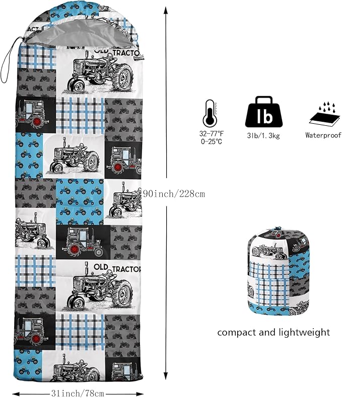 - A THOUGHT OUT DESIGN: Drawstring allows you to tighten hood and keep you warm. The idea of having a zipper at the foot to allow more warm or cool air to enter or exit the bag in different times of the season.Our Old Tracto Truck sleeping bags are designed to provide much needed rest after a full day of outdoor activities.