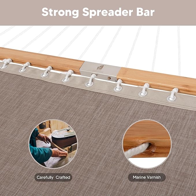 - Strong Spreader Bar: 55 inch spreader bars are stylish and stable, giving you a comfy nap without fearing to flop down. Features countersunk spreader bar holes which reduce the severity of the friction between rope and wood