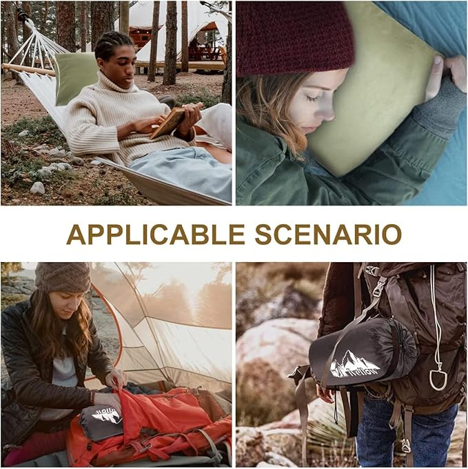 - 【Memory Foam Travel Pillow】Our premium travel camping pillow is fully adaptable to all kinds of trips, like camping, fishing, backpacking, hiking, beach, festival, or other outdoor activities. Whether you're sleeping on a hammock, a plane, a beach, in a car, RV, or under a tent, hotel for a "Power Nap" in the office or on the couch, our travel pillow will give you a great night's sleep wherever you lay your head.