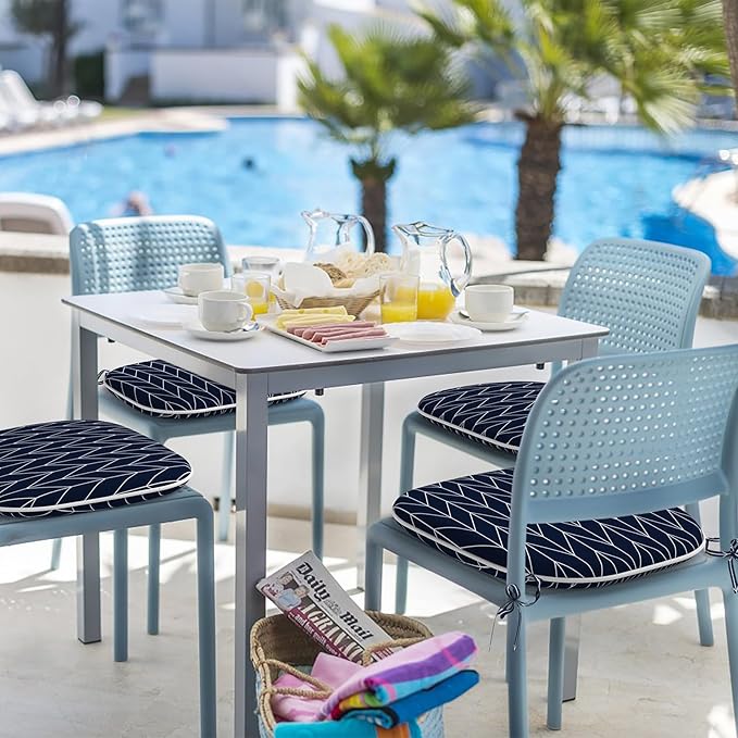 Indoor/Outdoor Chair Cushions 16x17 Inch, Patio Chair Cushions with Ties, All Weather Seat Cushions for Patio Furniture Home Garden Chair Use, Set of 4, Herringbone Navy