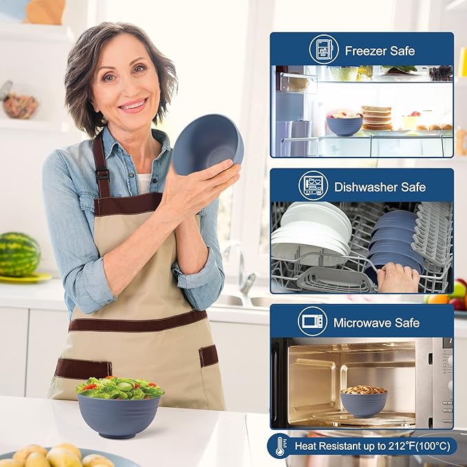 - 【Multicolor with 26 Oz Capacity】: These bowls come in a variety of vibrant colors and have a 26 oz capacity. They are deep enough for breakfast dishes like milk with corn flakes and also perfect for serving salads, fruits, rice, and noodles without any spillage. Enjoy your everyday meals at home or outdoors.