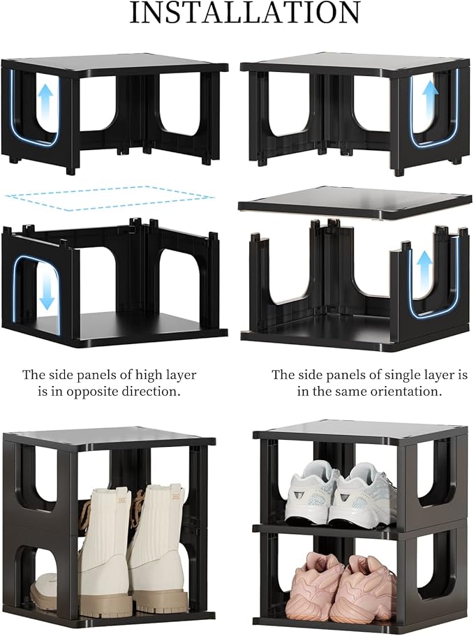 - Easy to Assemble: The simple modular structure of shoe organizer is easy to install. No tools are required for assembly. Easy to clean with shoe storage cabinets' smooth PP surface. Directly flush and wipe it without disassembly