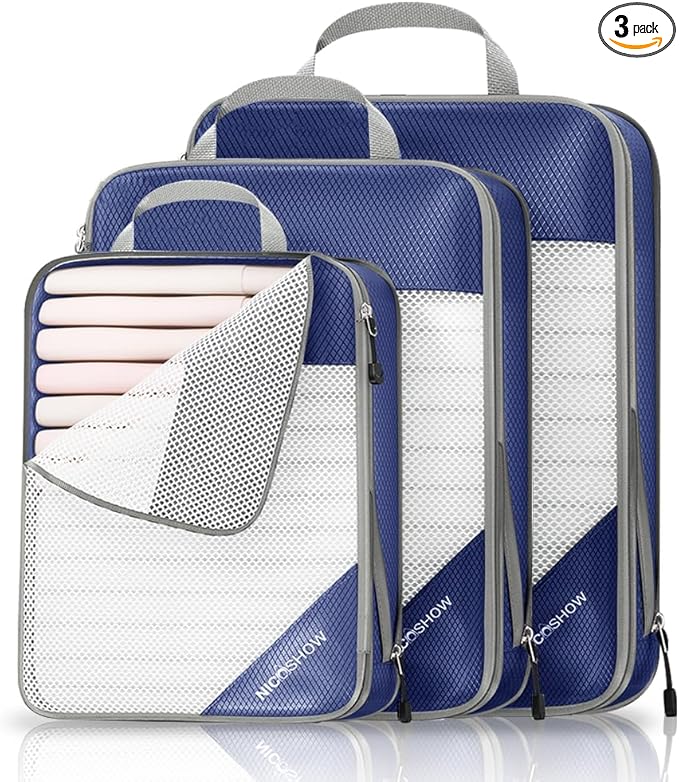 - Organize Like a Pro: These 3-set travel packing organizers contain 3 compressible packing cubes in different sizes. These travel cubes also make it easy to keep luggage organized and tidy. Say goodbye to messy luggage and hello to anti-stress packing