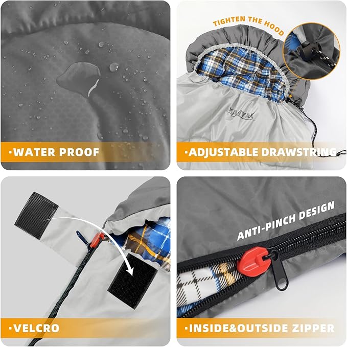 - SAFE AND SECURE, GUARD YOUR DREAMS -- Our attention to detail design, high quality zippers and solid stitching process ensure the durability and safety of sleeping bags. You can relax in your dreams and enjoy a worry-free outdoor adventure.