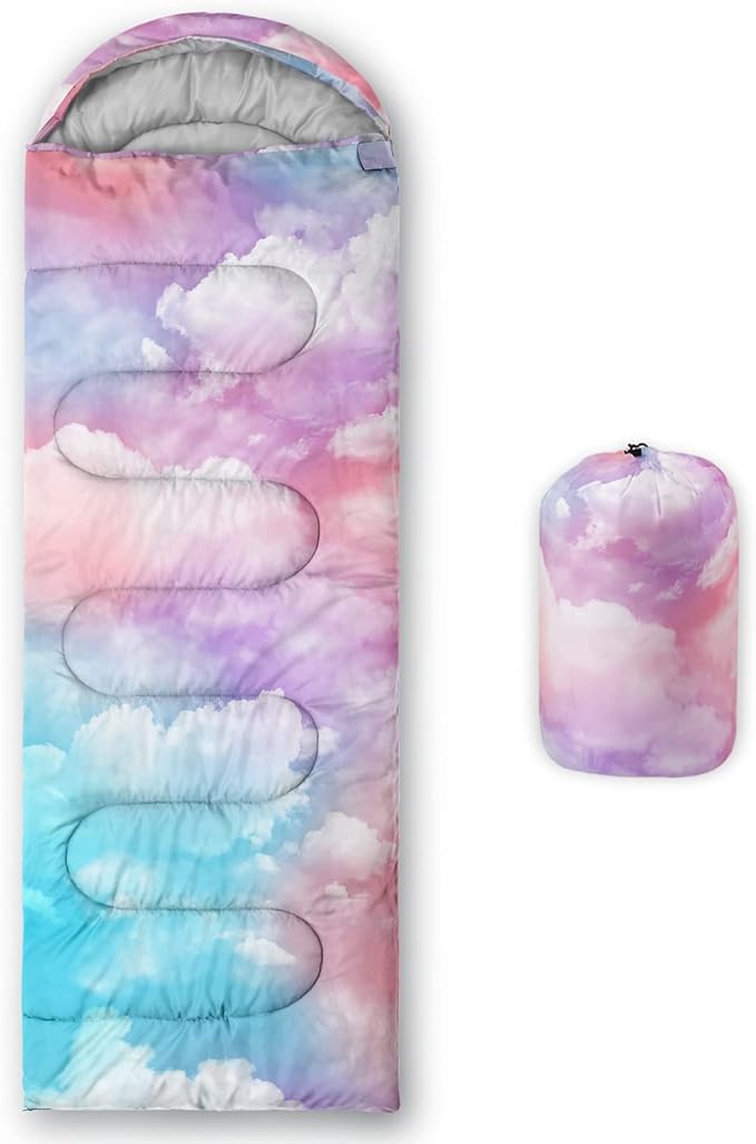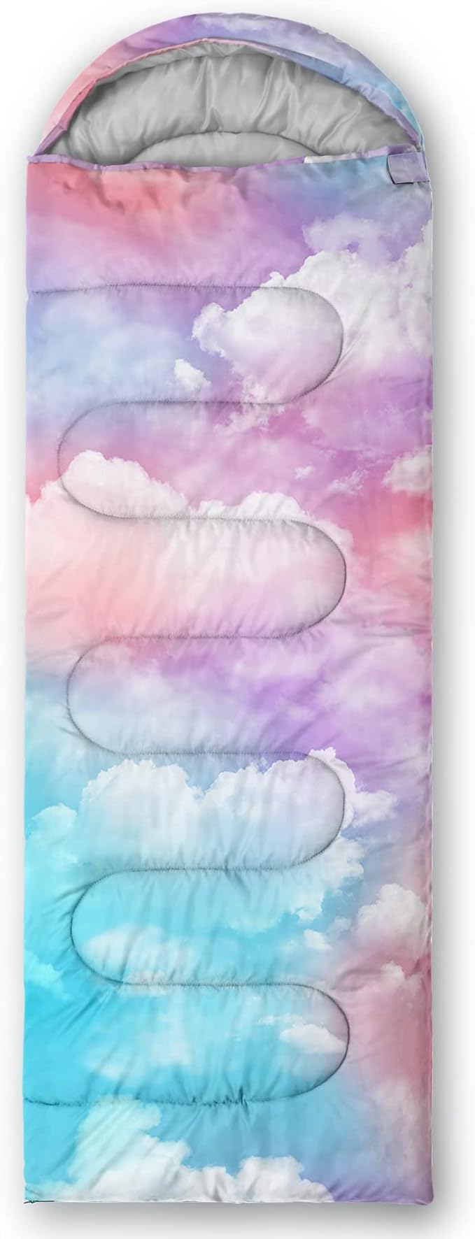 - A THOUGHT OUT DESIGN: Drawstring allows you to tighten hood and keep you warm. The idea of having a zipper at the foot to allow more warm or cool air to enter or exit the bag in different times of the season.Our Color Cloud sleeping bags are designed to provide much needed rest after a full day of outdoor activities.