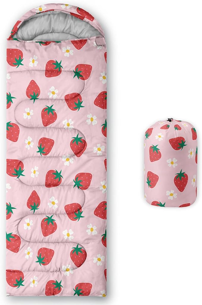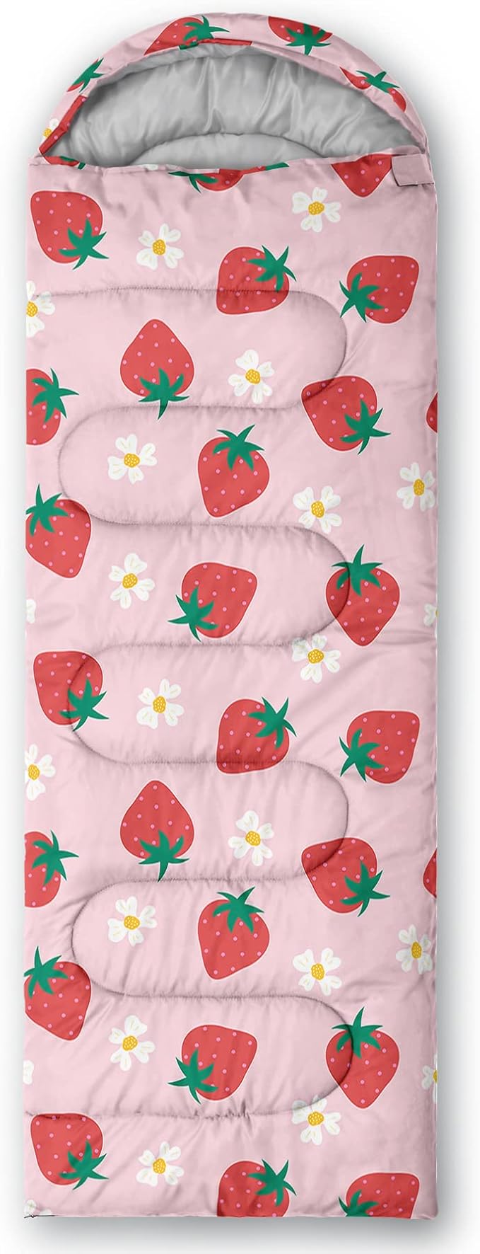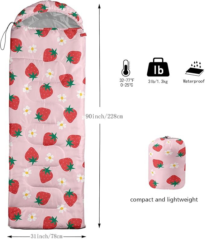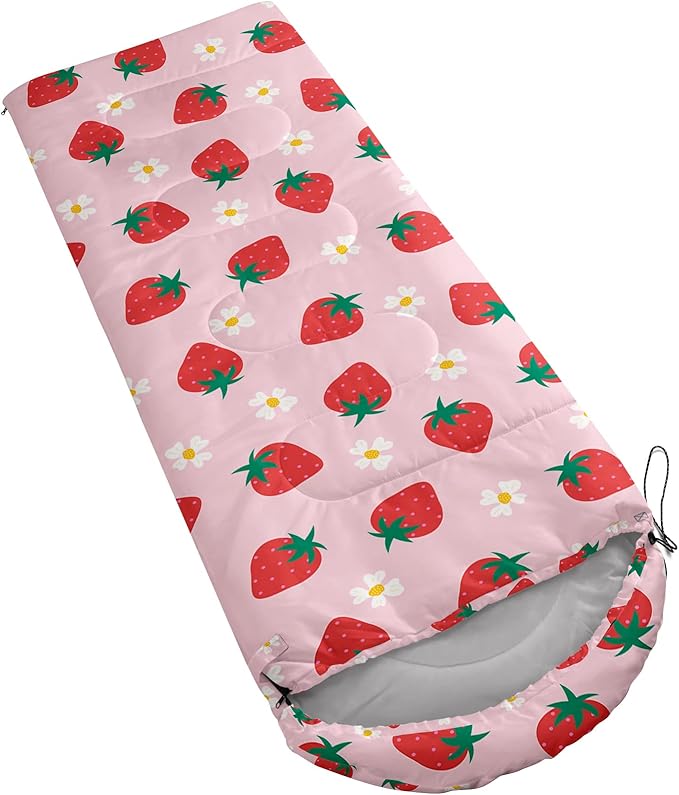 - A THOUGHT OUT DESIGN: Drawstring allows you to tighten hood and keep you warm. The idea of having a zipper at the foot to allow more warm or cool air to enter or exit the bag in different times of the season.Our Strawberry sleeping bags are designed to provide much needed rest after a full day of outdoor activities.