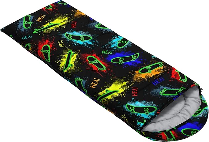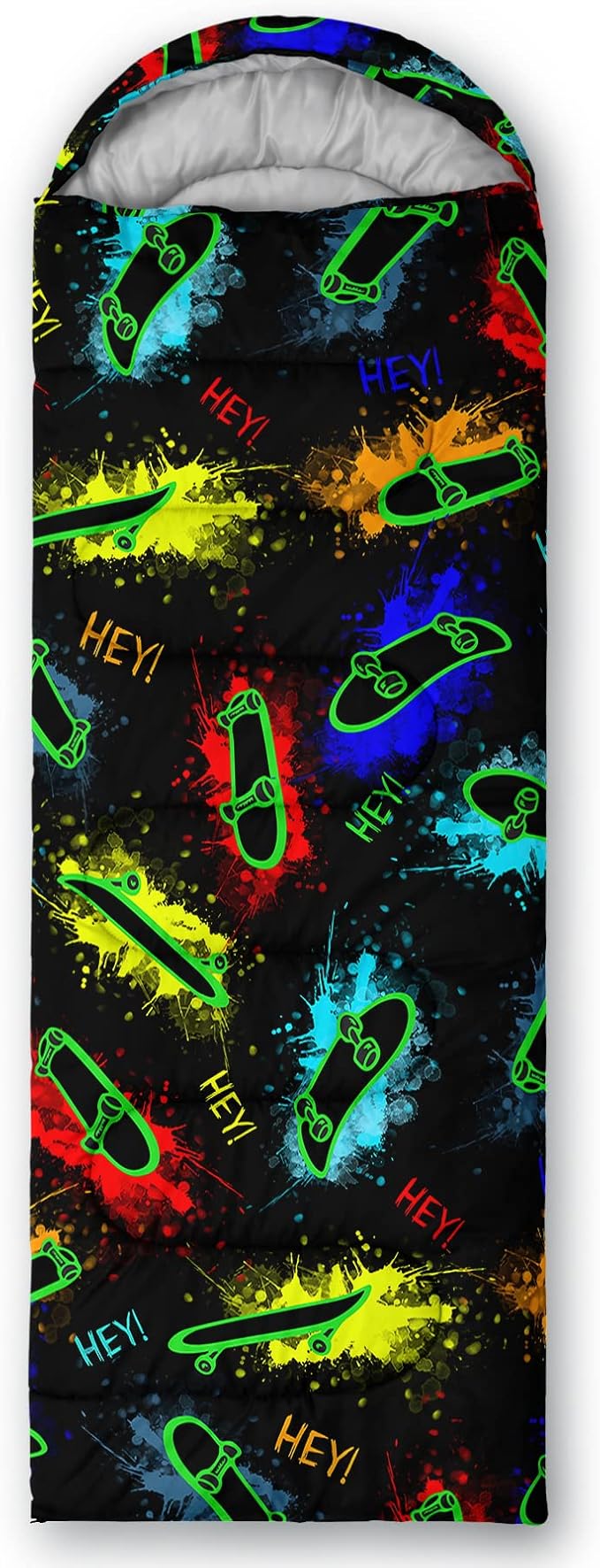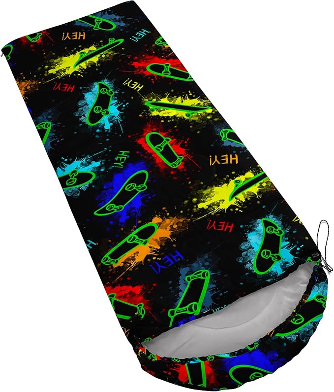 - A THOUGHT OUT DESIGN: Drawstring allows you to tighten hood and keep you warm. The idea of having a zipper at the foot to allow more warm or cool air to enter or exit the bag in different times of the season.Our Skateboard Graffiti sleeping bags are designed to provide much needed rest after a full day of outdoor activities.