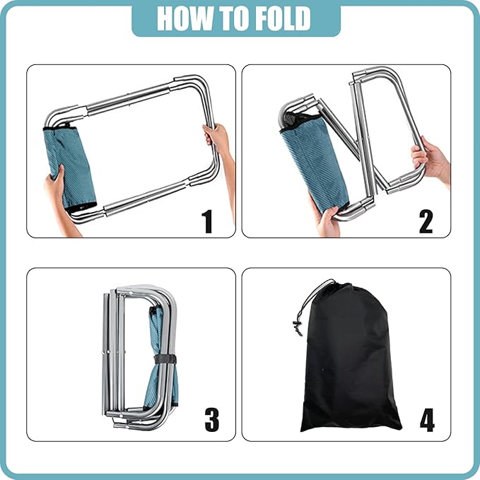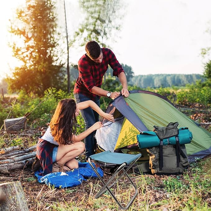- High Quality Material: Aluminum alloy material makes the folding chair more lightweight and sturdy, the fabric on top of the foldable stool is jacquard fabric,which is wear-resistant, water repellent and durable, and can be used for a long time.
