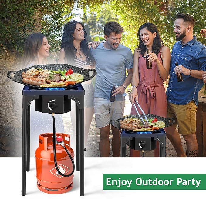 - 【GREAT FOR OUTDOOR】The height of propane grill burner is suitable for an adult and use for brewing, camping, fishing, outdoor cooking, emergency preparedness, etc. Owning this outdoor cooking stove, you will have a perfect outdoor kitchen