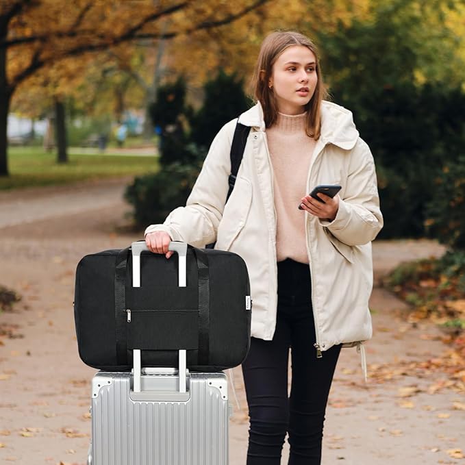 Carry on luaggage 22x14x9 Airlines Approved Foldable Carry on Bag Travel Duffel Packable Duffle Overnight for Women and Men 40L (Black)
