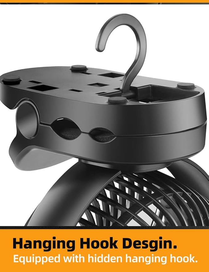 6'' Portable Hanging RV Tent fan with Remote Control,10000mAh Battery Camping Fan with LED light and Timer, 40 Hours Working Time Rechargeable Clip Fan, as Emergency Power - Black