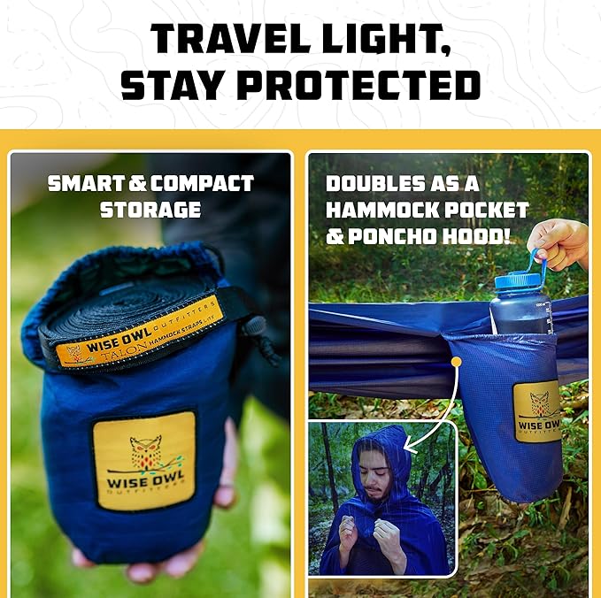 Wise Owl Outfitters Camping Hammock – 500lbs Portable Hammock with Tree Straps - Travel, Backpacking, Hiking, Outdoors Camping Gear - Single or Double