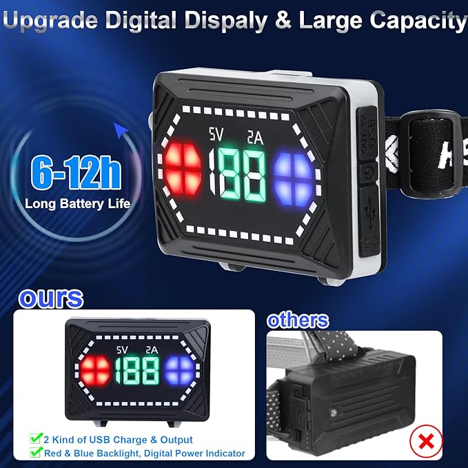 - 【2 USB Output & Extra Large-Capacity Headlamp】: BUD K Bright headlamp is equipped with a high-lumen LED and a large capacity battery that can be recharged over 10000 times, making it perfect for long-term use. when open the light max up distance to 3280ft .USB output port which can be used as an emergency power supply for your smartphone, PC, or other device, ensuring that you never run out of power while on the go