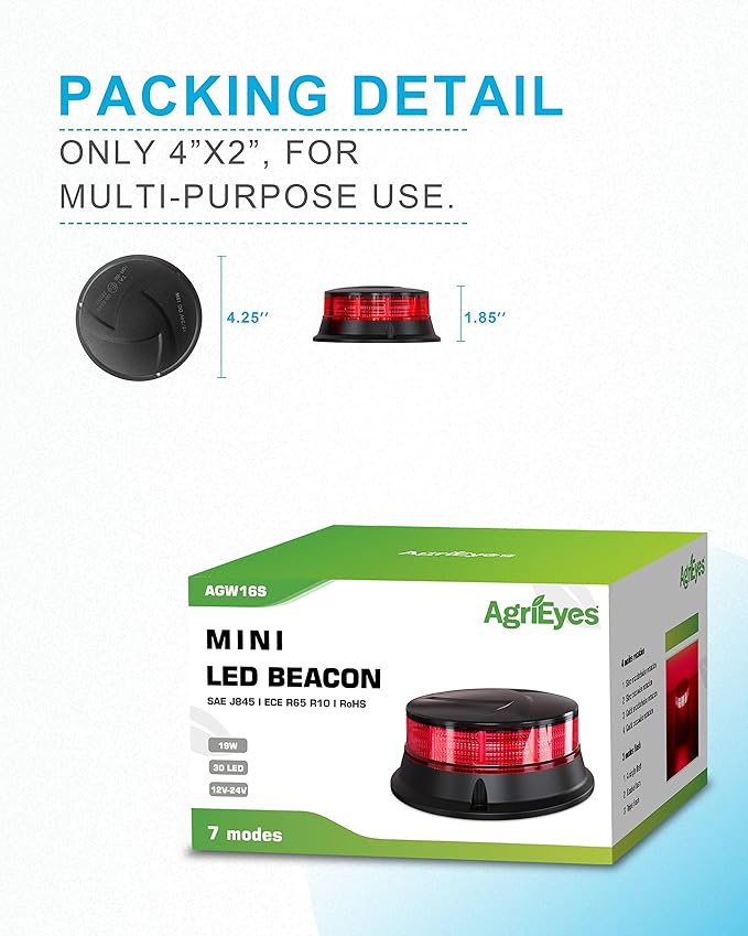 - 【SUPER VISIBILITY】The rooftop strobe light uses 30 high-intensity LED chips; its 360-degree coverage ensures full illumination from all angles, maximizing light output and providing effective warning to other vehicles; the bright red beacon is easily visible in rain, fog, and snow, both day and night