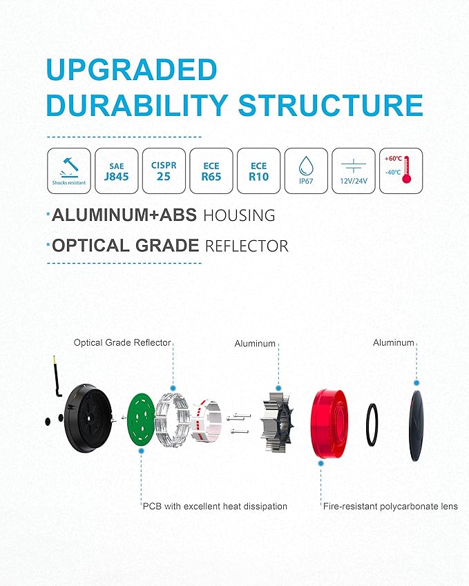 - 【HIGH QUALITY】The flashing hazard lights are made of durable ABS material and a crystal-clear PC mask, providing maximum brightness; with an IP67 waterproof rating, they can be used in rain and snow, offering a durable life of 50,000 hours