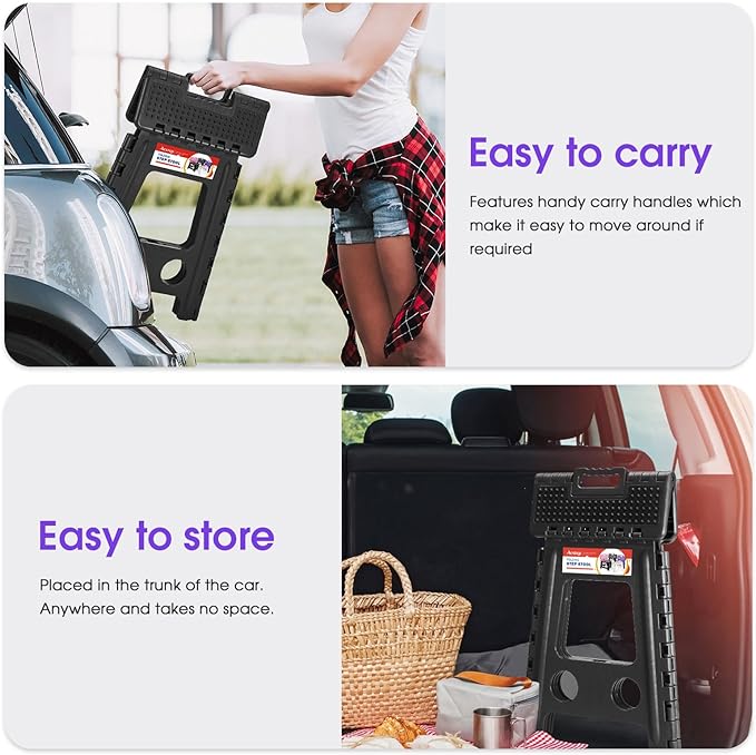 - Space Save Step Stools: ACSTEP foldable stool with handle. Just lift the handle and it will fold up easily and quickly in a few seconds. Lightweight and collapsable, easy to store in corners of bathrooms, kitchens, bedrooms, etc. to keep your home organized, free to go with the slit storage, not occupying space.
