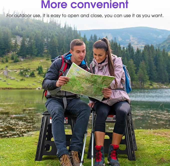 - Non Slip: The special rubber dot textured surface makes the foldable step stool more non-slip, so you don't have to worry about slipping when you stand on it. The bottom corner of the four feet of the stepping stool are upgraded to black non-slip dot textured rubber straps for superb grip , will be more non-slip compared to the original non-slip rubber straps. So it is a perfect companion in the bathroom and kitchen.