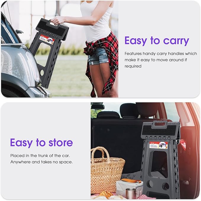 - Space Save Step Stools: ACSTEP foldable stool with handle. Just lift the handle and it will fold up easily and quickly in a few seconds. Lightweight and collapsable, easy to store in corners of bathrooms, kitchens, bedrooms, etc. to keep your home organized, free to go with the slit storage, not occupying space.