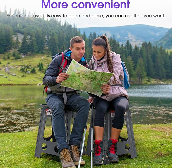 - Non Slip: The special rubber dot textured surface makes the foldable step stool more non-slip, so you don't have to worry about slipping when you stand on it. The bottom corner of the four feet of the stepping stool are upgraded to black non-slip dot textured rubber straps for superb grip , will be more non-slip compared to the original non-slip rubber straps. So it is a perfect companion in the bathroom and kitchen.