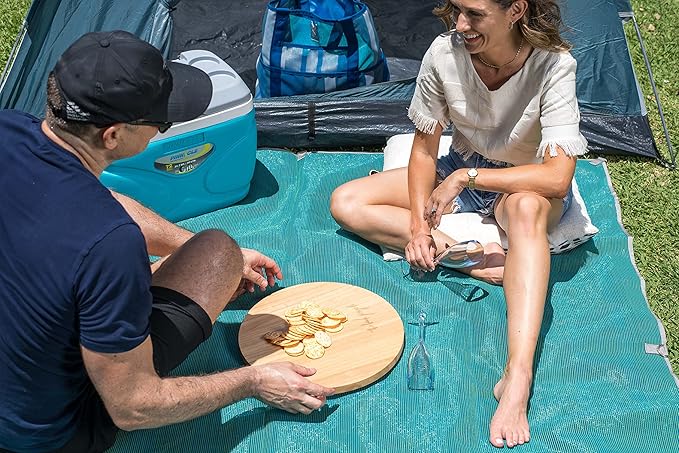 - All of the Adventure - None Of The Mess: Our unique design utilizes layers of high-density weaving that allows sand, dirt, and debris to fall right through. Avoid trapping sand or dirt inside your car, shoes, and bag - our sand-free mat keeps debris from coming back up. And because wind and sunlight passes right through its Uv stabilized surface, it won’t kill the grass underneath. Quick-drying & water-resistant, it’s the perfect companion for every adventure.