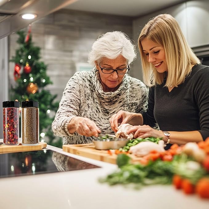 - DURABLE CLEAR GLASS DESIGN – Thick, lead-free glass jars provide long-lasting use and allow quick identification of contents such as salt, pepper, cinnamon, or seasoning blends.