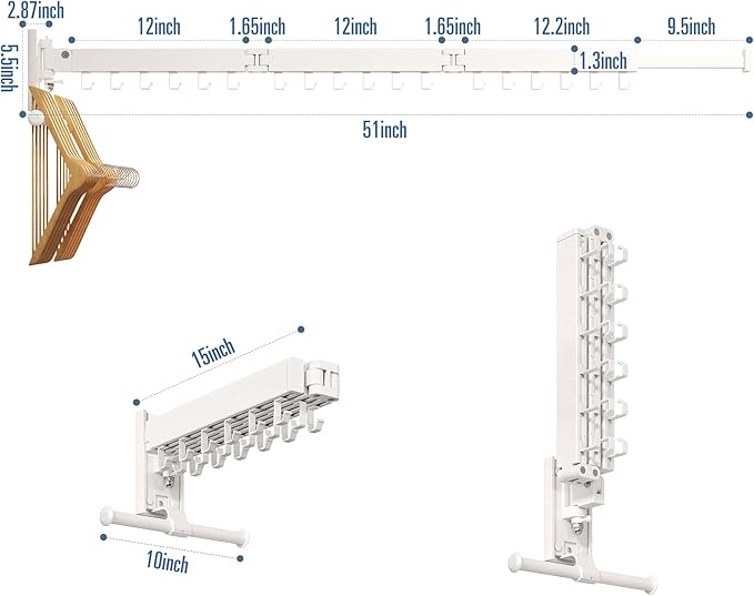 Drying Rack, Wall Mounted Clothes Rack, Aluminum, 220lbs Capacity, Foldable, White