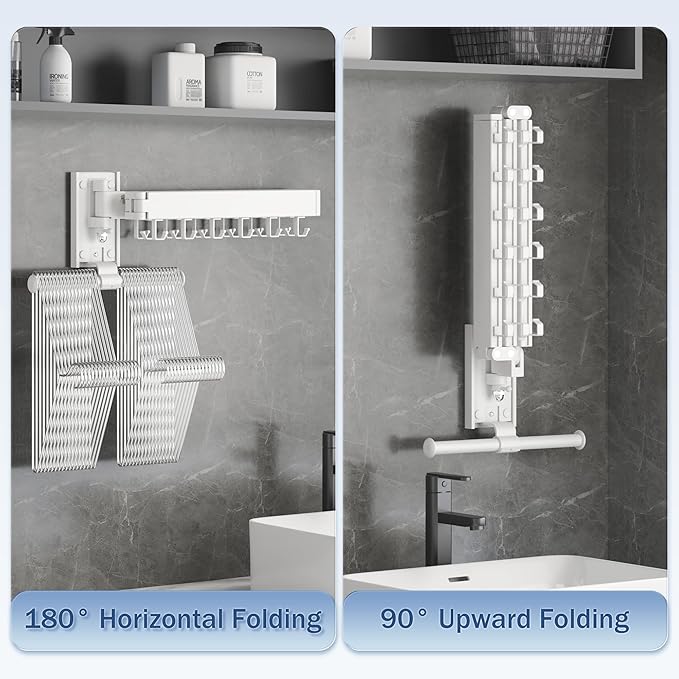 - _-_-_Punch-free Installation and Very Firm_-_-_This drying rack clothing can be installed with or without drilling. Both installation methods are very simple. If you choose to install without punching, the wall to be installed needs to be smooth, such as ceramic tiles.