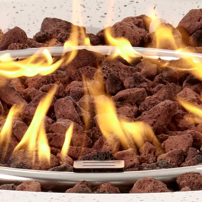- 🔥 【 Capture the Warmth】: Natural red lava pieces fill the burner bowl and help retain the warmth longer as they are heated by the flames. No soot or ash to clean up and no smoke as with wood burning or charcoal fires. Clean burning propane stays lit with no stoking and is better for the environment. The Firepit table also comes with a waterproof cover to keep it clean and dry when not in use.