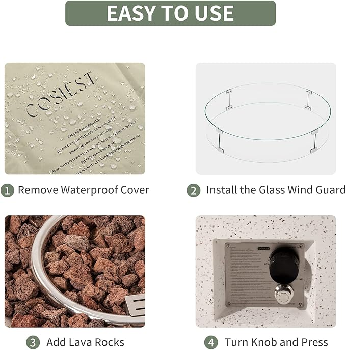 - 🔥【Premium color】: Not white, it is beige with five colors of colored spots. It looks more sophisticated than a solid color fire table. The clean and high level beige square fire pit table is ideal for gathering with friends and family for warm, good conversation.