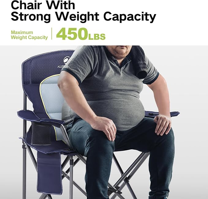 - 【Oversized Quad Chairs】The size for Oversized Camping Folding Chair is 25.20" L x 39.37" W x 39.37"H, 9.05" x 38.58" when Folded, and weighs only 13.2 lbs. Support up to 450 lbs, perfect for heavy people. Your best companion for hiking, camping, hunting, traveling, fishing, picnic and other outdoor activities.