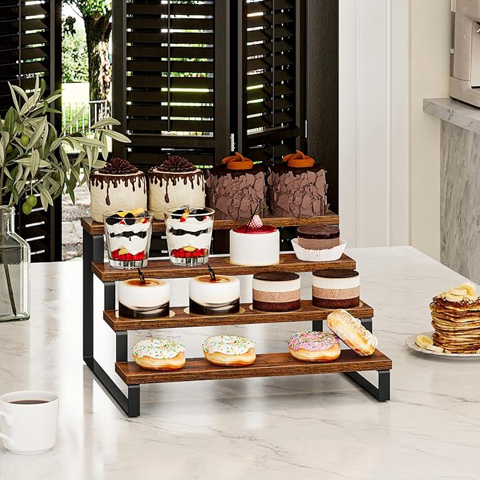 Giikin 4 Tier Spice Rack, Wooden Spice Rack for Countertop, Kitchen Counter Storage Shelves Cupcake Stand Holder Display Stand, Rustic Brown