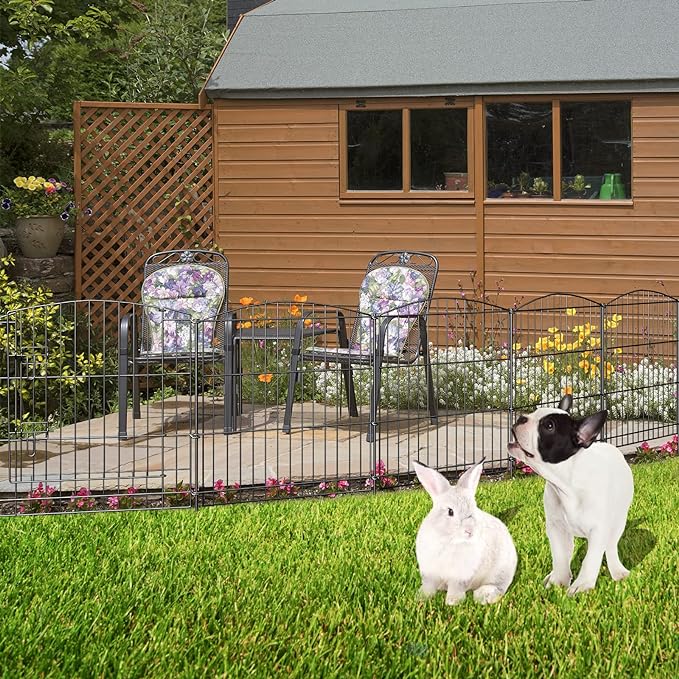 - MULTI-PURPOSE DECORATIVE FENCE:This decorative fence can be used as a garden fence or animal barrier fence and can be set up around plants, trees, patio landscaping, vegetables, as a plant protection fence, garden landscape fence, flower bed fence and more. Can also be used as a pet fence such as dogs or rabbits to prevent small animals from escaping or entering and ruining your garden. Can also be used decoratively on driveways, walkways, backyard decorations and garden borders