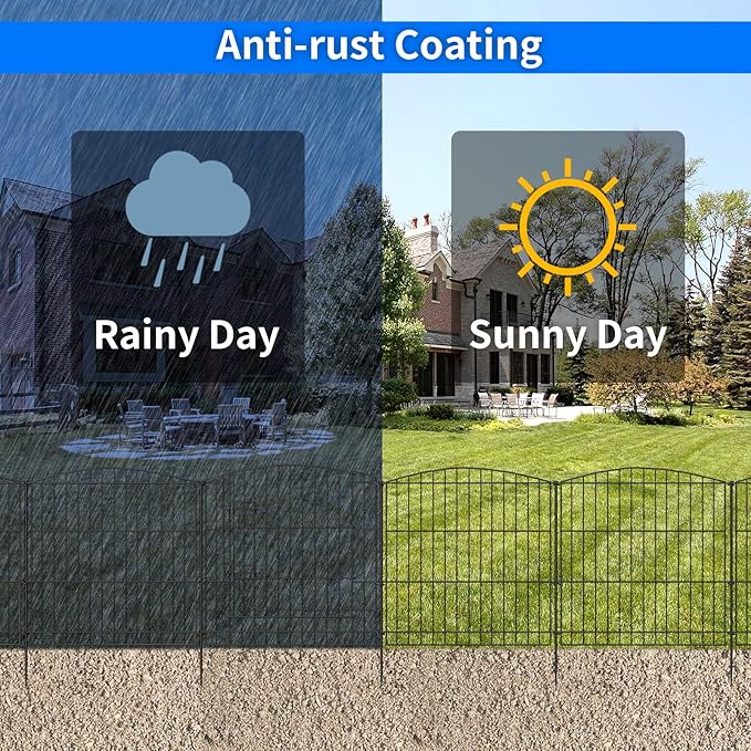 - ANTI-RUST AND STURDY CONSTRUCTION:The metal fence is welded by high-quality wire, and the surface is treated with anti-rust coating, which is not easy to crack and bend, anti-rust and durable. Even if it is exposed to the sun and rain outdoors, it can work in various bad weather for a long time