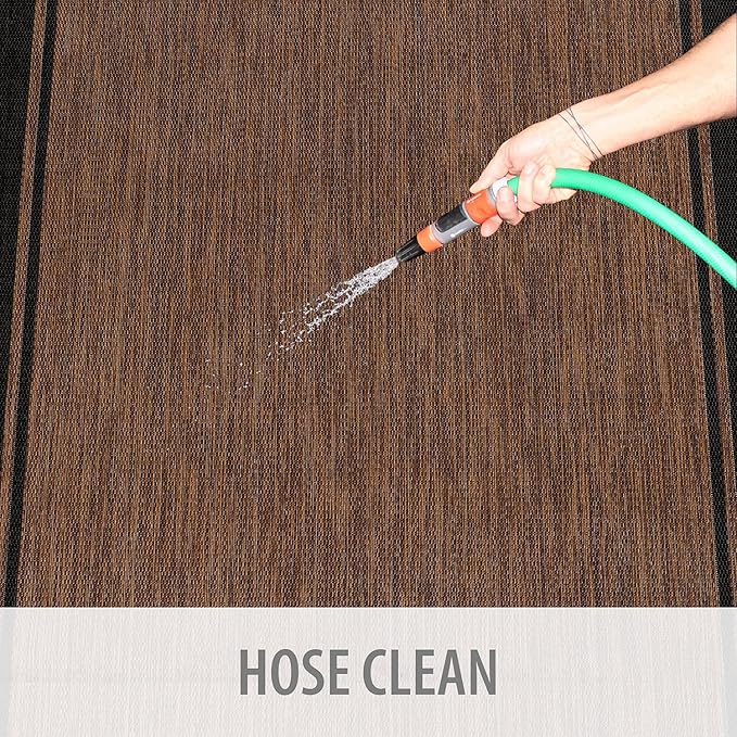 - [ WASHABLE: ] You can vacuum with a vacuum cleaner indoors and you can wash with a hose outdoors. To wash an outdoor rug, spray the surface with a 5-1 mixture of mild dish soap and water and then rise with a hose.