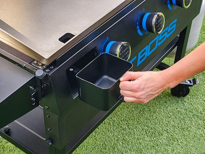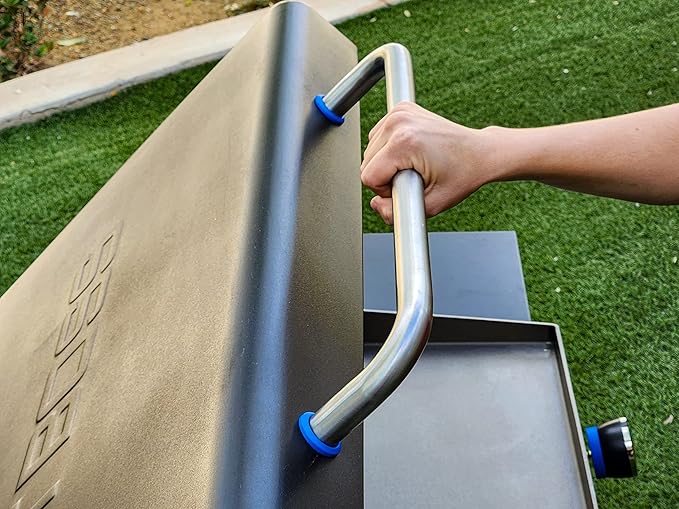 - Sturdy lid for protecting the griddle surface between cooks, doubles as a windscreen