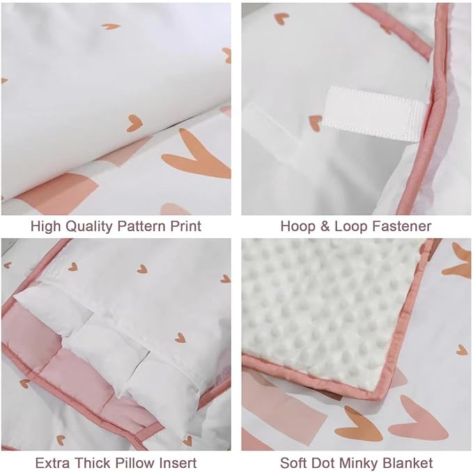 - ★Soft and Fuzzy - Each toddler sleeping bag measures 53 x 21 x 1.5 inches and is perfectly sized for keeping your little one cozy. The cozy set includes a padded mat, blanket and pillow. The blanket is made of microfiber and fleece minky fabric. The padding has enough filling for a super-soft and fuzzy feel.