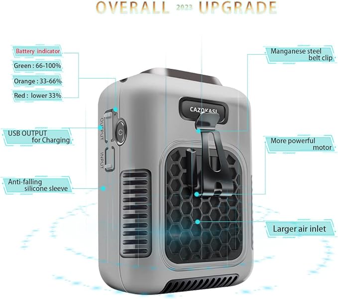 CAZOKASI Upgrade Waist Clip Fan Wearable Fan Portable Cooling and Heatstroke Prevention Fan (Industrial orange black) (Industrial gray black)