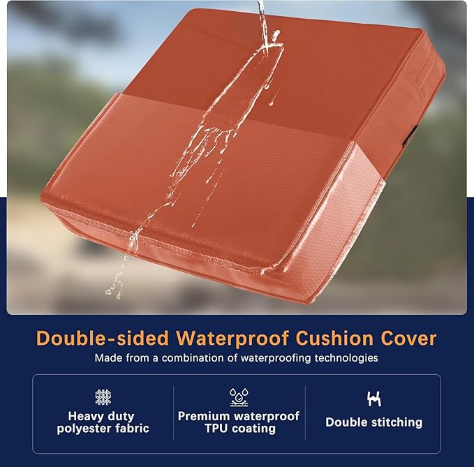 - Double-Waterproof Tech Cushion Cover: Favoyard outdoor cushions for patio furniture choose 300GSM high density polyester fabric for the cover could provide excellent waterproof and dust resistance ability. In addition, there is a TPU coating on the reverse side of the fabric. Both the TPU coating and the fabric are highly waterproof.