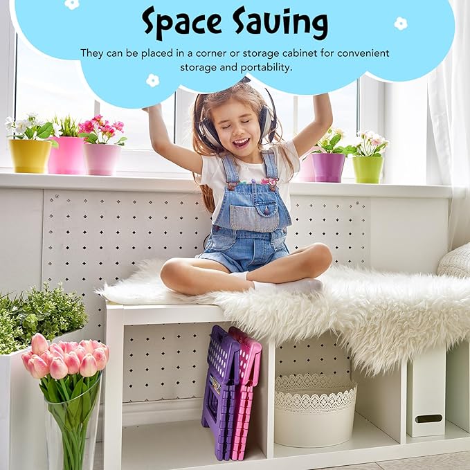 ACKO Folding Step Stool 9 Inch 300 lb Capacity, Plastic Foldable Step Stools for Kids and Adults, Folding Stools Suitable for Kitchen, Stepping Stool with Handle Purple 1PC