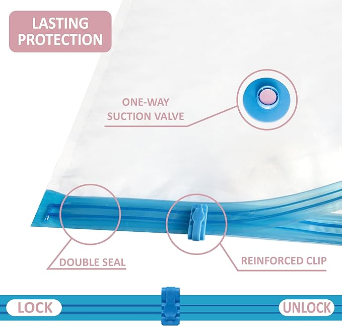 - Exceptional Compression: Our jumbo space saver bags compress items by 80% of the original volume; You can fit in loads of items even in tight spots; Say hello to a clutter-free, well-organized home effortlessly