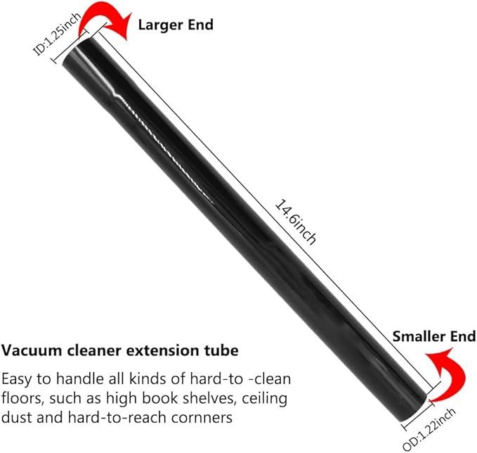 - 【Vacuum Extension Wand】The vacuum extension wand’s length is 14.6". The small end outer diameter is 1.22" (31mm), which can be connected to vacuum accessories with an inner diameter of 1 1/4" (1.25") (32mm). The large end outside diameter is 1 1/4" (1.25") (32mm) can be connected to vacuum attachments with an outside diameter of 1.22" (31mm) or 1.21" (30.7mm) and an inside diameter of 1.37" (35mm).