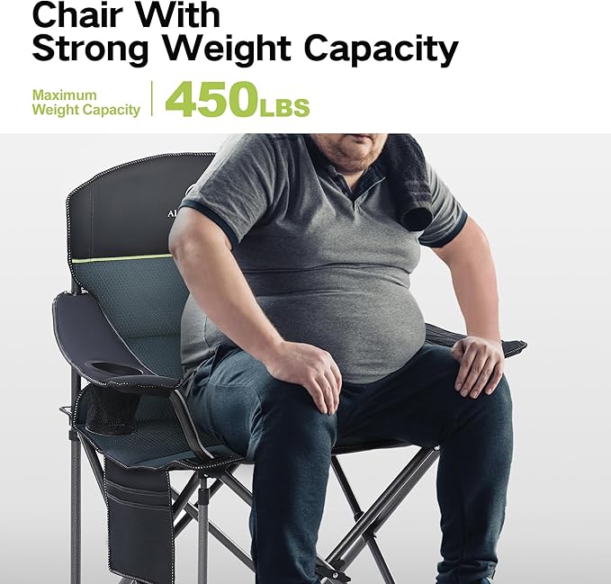 - 【Oversized Quad Chairs 】The size for Oversized Camping Folding Chair is 25.20" L x 39.37" W x 39.37"H, 9.05" x 38.58" when Folded, and weighs only 13.2 lbs. Support up to 450 lbs, perfect for heavy people. Your best companion for hiking, camping, hunting, traveling, fishing, picnic and other outdoor activities.