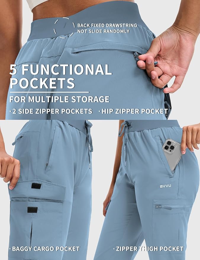 BVVU Women's Hiking Pants Lightweight Quick Dry Travel Outdoor Pants Waterproof Work Cargo Joggers with Zipper Pockets