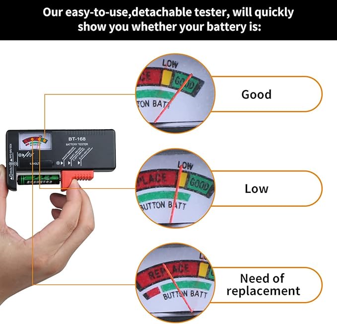 - Large Batteries Storage Container : Battery organizer with tester has a large capacity and can hold a lot of batteries, so that the batteries you buy scattered everywhere can be placed.