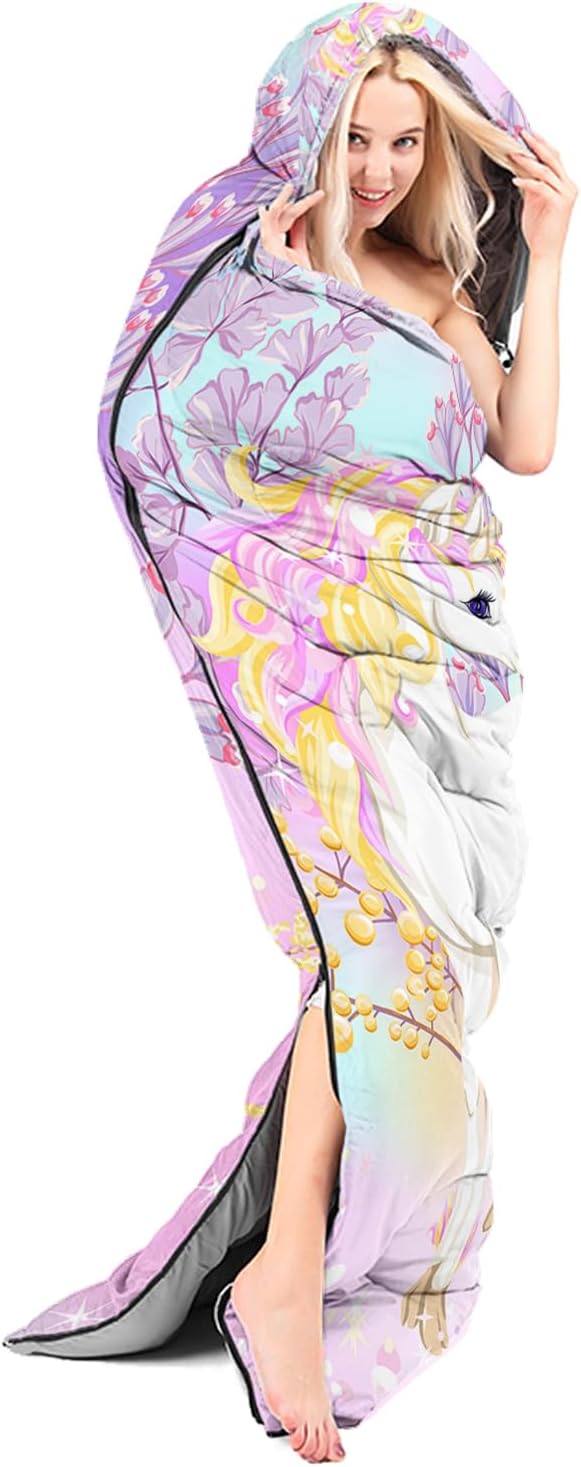 - 🌈【Fashion Design】SIZE - 31 by 90 inches (W x D). Our sleeping bag can be used in 3 seasons with a design temperature of 32℉-77℉(0℃-25℃). These bags also have a weather resistant waterproof design to keep you warm and prevent you from any dampness.